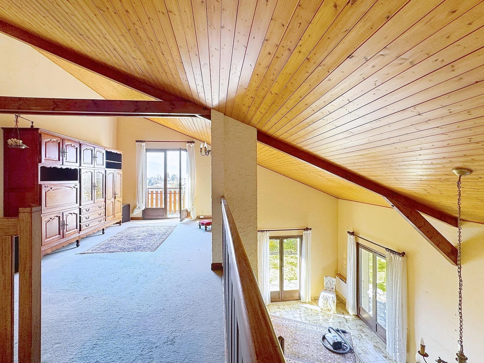 Le rez-de-chaussée propose une pièce de vie lumineuse avec cheminée, ouverte sur une terrasse exposée ouest, une cuisine équipée, WC et un espace buanderie/cuisine d’été. À l’étage, trois chambres, une salle de bains et une mezzanine qui apporte un espace de vie supplémentaire. Les combles accueillent une chambre et un grenier.